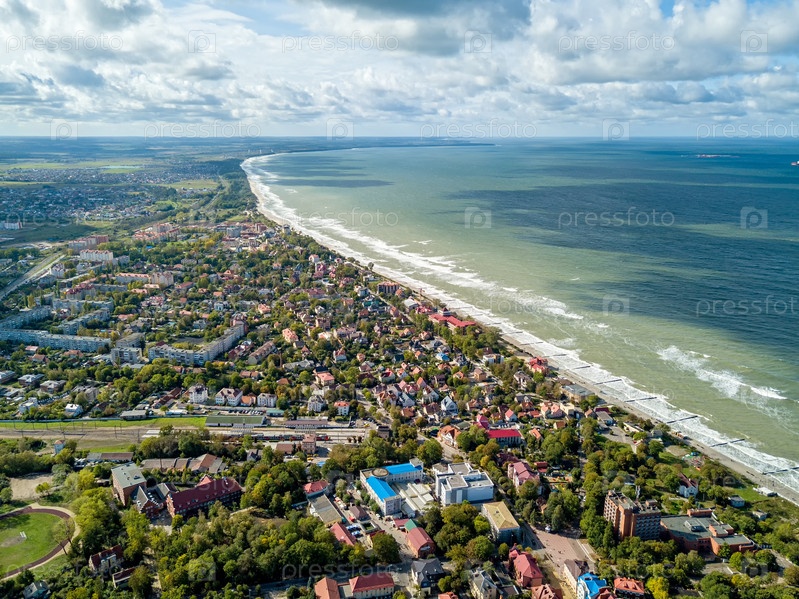 Россия, Зеленоградск. Панорамный вид на Балтийское море. Аэрофотосъемка