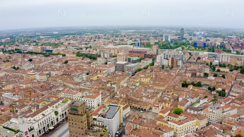 Брешиа, Италия. Центральная часть города. С высоты птичьего полета. Лето