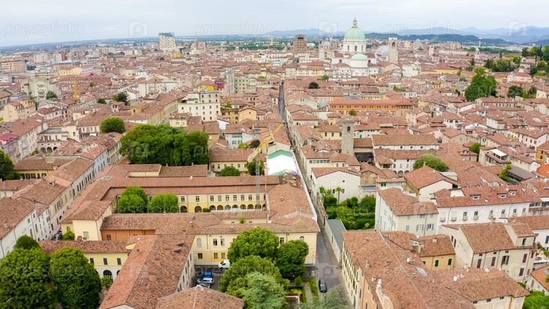 Брешиа, Италия. Центральная часть города. С высоты птичьего полета. Лето