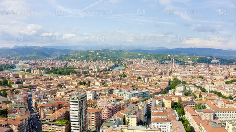 Верона, Италия. Центральная часть города. С высоты птичьего полета. Лето