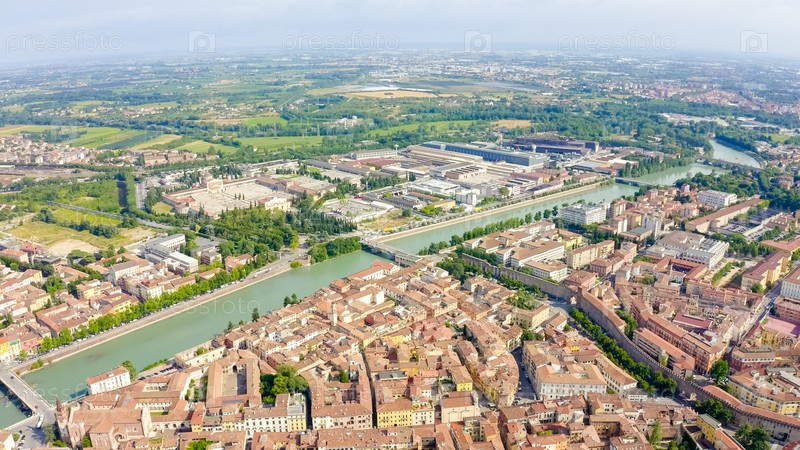 Верона, Италия. Центральная часть города. С высоты птичьего полета. Лето