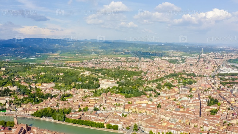 Верона, Италия. Центральная часть города. С высоты птичьего полета. Лето