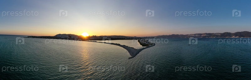 Новороссийск, Россия. Центральная часть города. Суджукская коса. Закат. С высоты птичьего полета