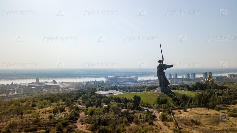 Восход. Скульптура Родина-мать зовет! - композиционный центр памятника-ансамбля Героям Сталинградской битвы на Мамаевом кургане. Россия, Волгоград