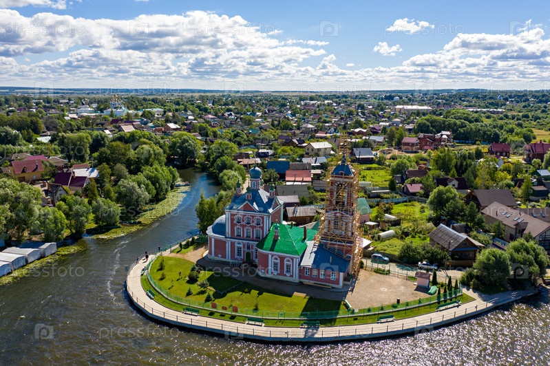 Переславль-Залесский, Россия. Храм сорока мучеников Севастийских. Плещеево озеро. С высоты птичьего полета