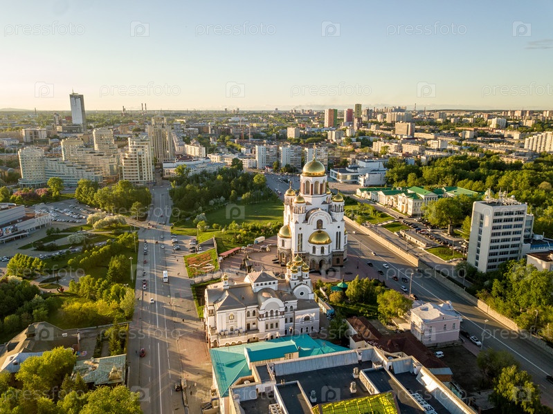 Храм на Крови во имя Всех Святых в Земле Российской. Вид с воздуха (дрон). Екатеринбург, Россия