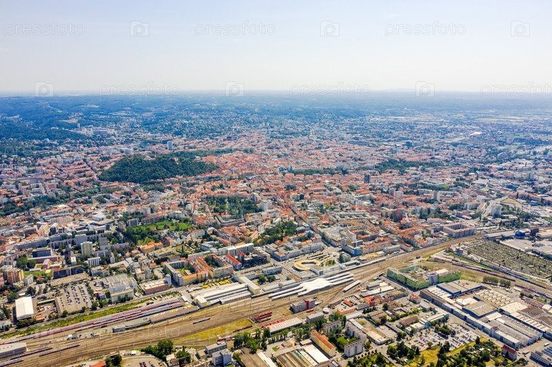 Грац, Австрия. Панорама города. Вид с воздуха на город и его окрестности
