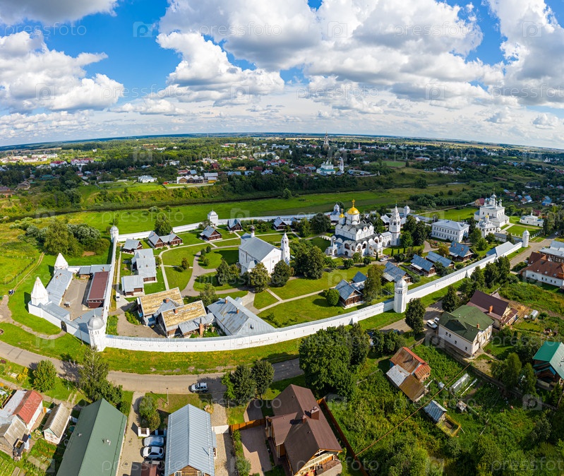Суздаль, Россия. Свято-Покровский женский монастырь города Суздаля. С высоты птичьего полета