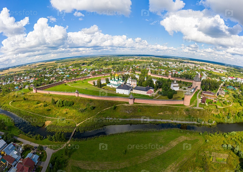 Суздаль, Россия. Спасо-Евфимиев монастырь — монастырь в Суздале, основанный в 1352 году. Вид с воздуха
