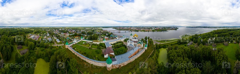 Россия, Кострома. Свято-Троицкий Ипатьевский монастырь в Костроме. С высоты птичьего полета. Панорама 360
