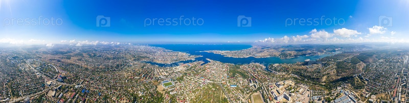 Севастополь. Крым. Панорамный вид на город. Севастопольская бухта. Панорама 360. Вид с воздуха
