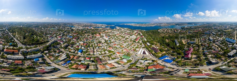 Севастополь. Крым. Панорамный вид на город. Севастопольская бухта. Панорама 360. Вид с воздуха