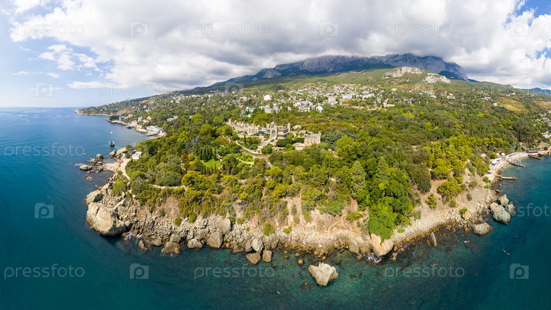 Алупка. Крым. Воронцовский дворец в свете яркого солнца. Лето. С высоты птичьего полета