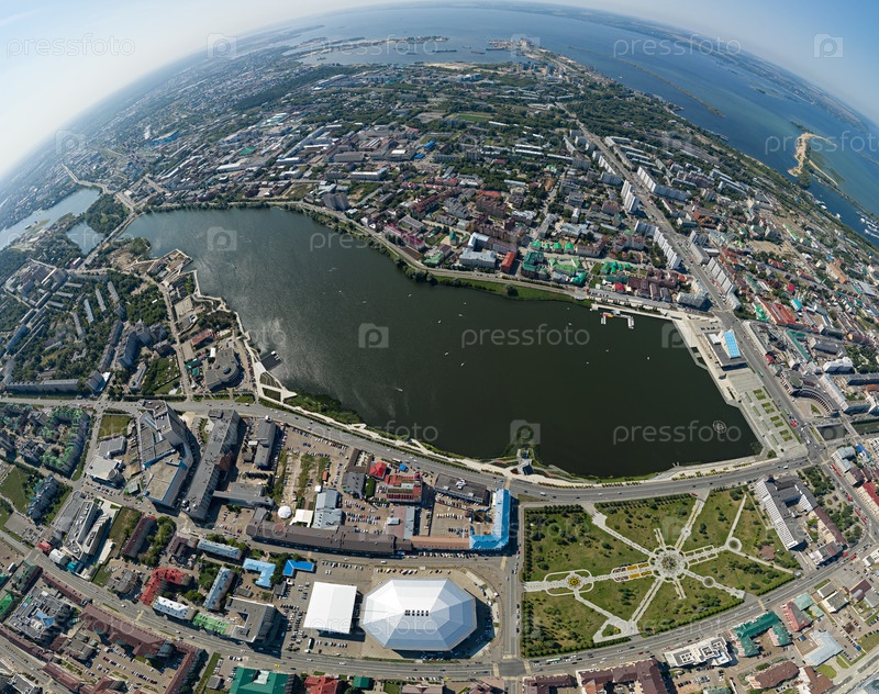 Казань, Россия. С высоты птичьего полета. Панорама Казани. Озеро «Нижний Кабан»
