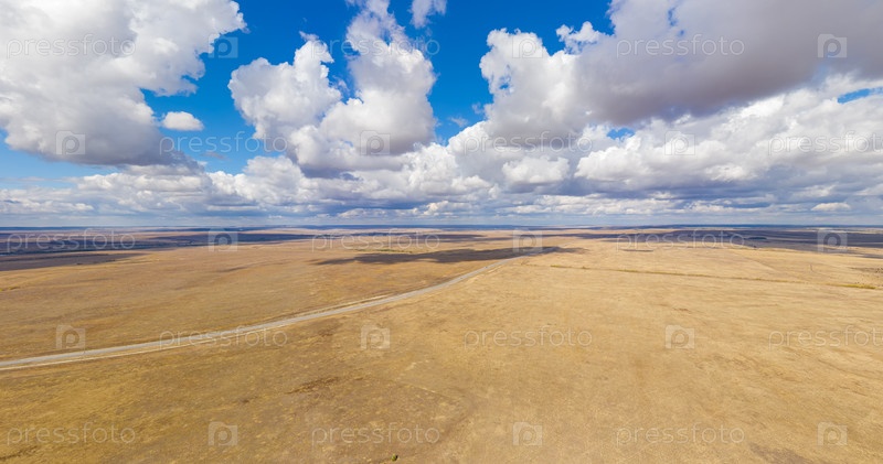 Россия. Сильные дождевые облака над осенними полями. Степь. С высоты птичьего полета