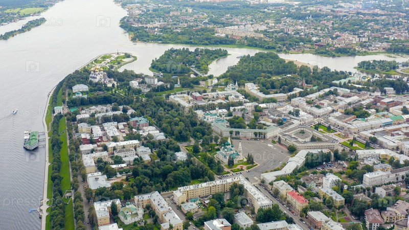 Россия, Ярославль. Полет над городом, панорамный вид на центр Ярославля, вид с воздуха
