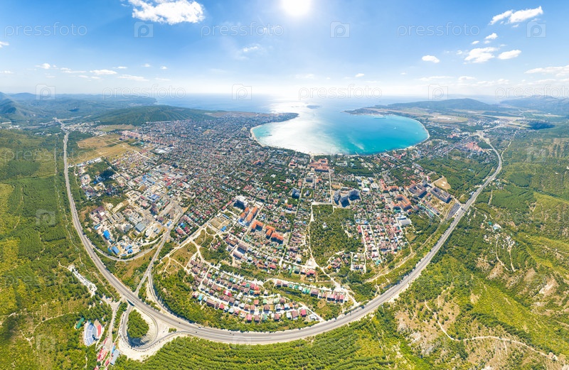 Геленджик, Россия. Панорамный вид на город и залив. Лето. С высоты птичьего полета