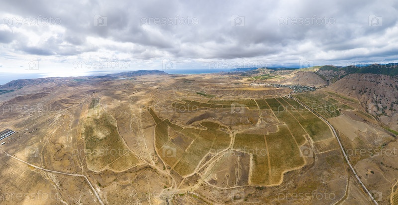 Судак, Крым. Виноградники возле поселка Солнечная Долина. Осень. С высоты птичьего полета