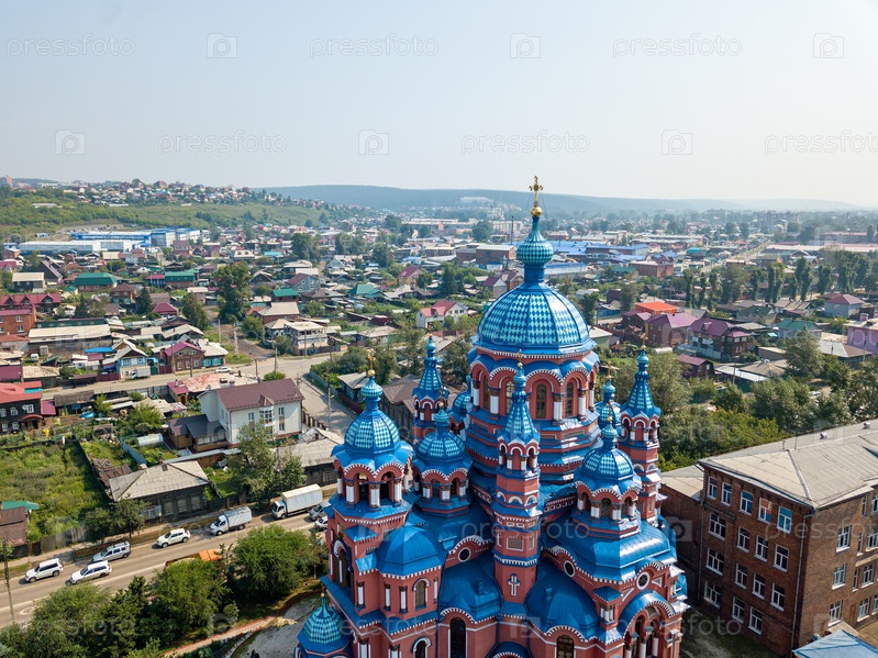 Россия, Иркутск. Храм иконы Казанской Божией Матери в Кустарной слободе. Аэрофотоснимок