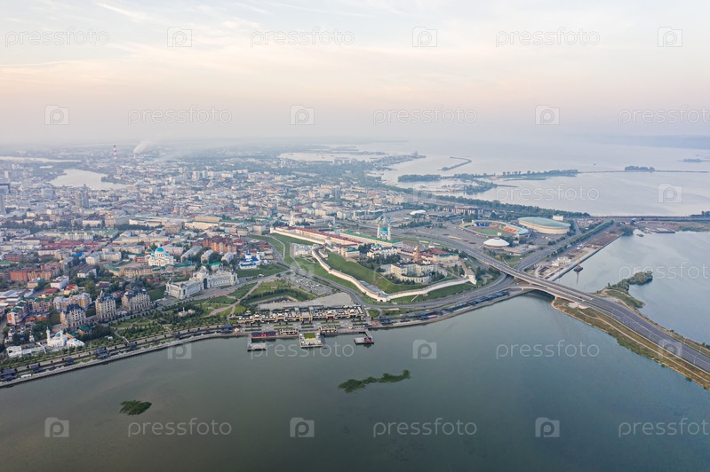 Вид с воздуха на Казанский Кремль во время восхода солнца