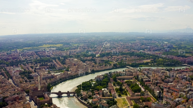 Верона, Италия. Центральная часть города. С высоты птичьего полета. Лето