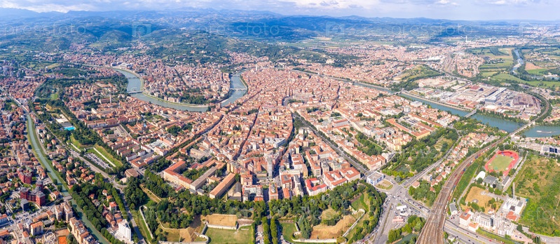 Верона, Италия. Панорама исторической части Вероны с воздуха