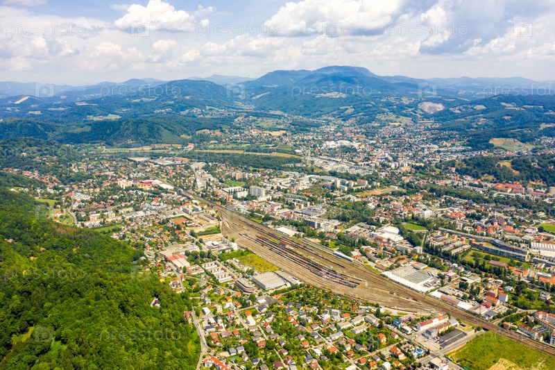 Грац, Австрия. Панорама города. Вид с воздуха на город и его окрестности
