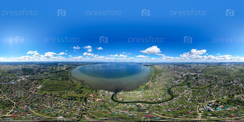 Переславль-Залесский, Россия. Город и озеро Плещеево. С высоты птичьего полета. Панорама 360