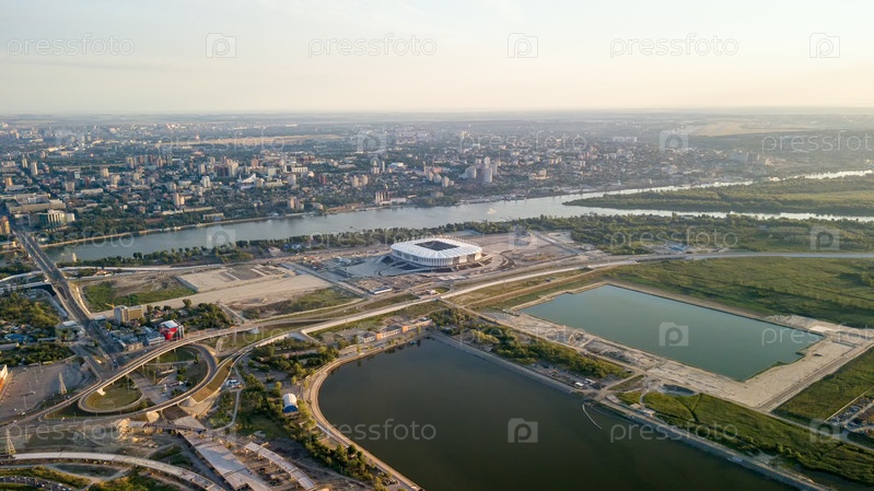 Панорама центральной части Ростова-на-Дону. Стадион, река Дон. Россия, Ростов-на-Дону