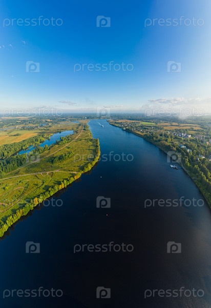 Углич, Россия. река Волга. Набережная возле города Углич. С высоты птичьего полета