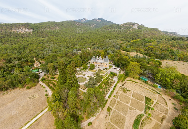 Массандровский дворец императора Александра III расположен в Верхнем Массандре на южном берегу Крыма Дата основания XIX век С высоты птичьего полета