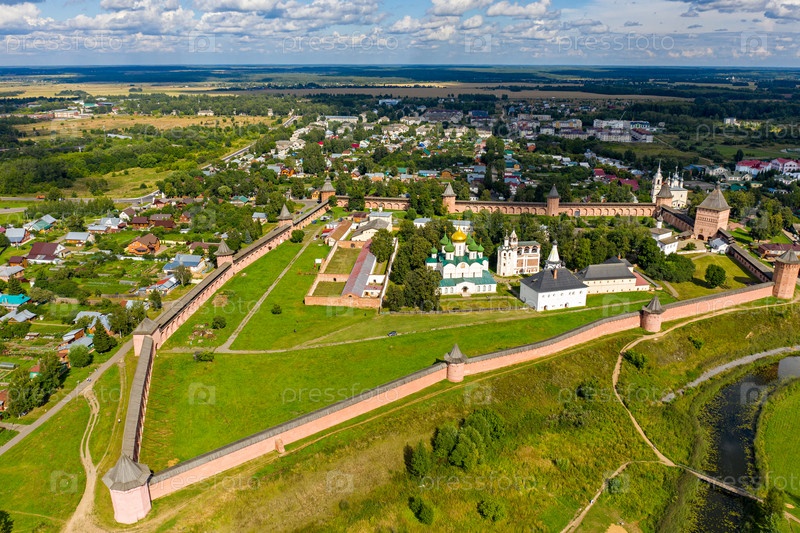 Суздаль, Россия. Спасо-Евфимиев монастырь — монастырь в Суздале, основанный в 1352 году. Вид с воздуха