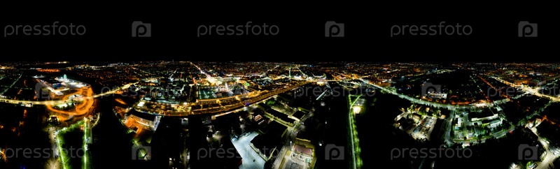 Тула, Россия. Ночная панорама Вид с воздуха. Огни большого города. Панорама 360