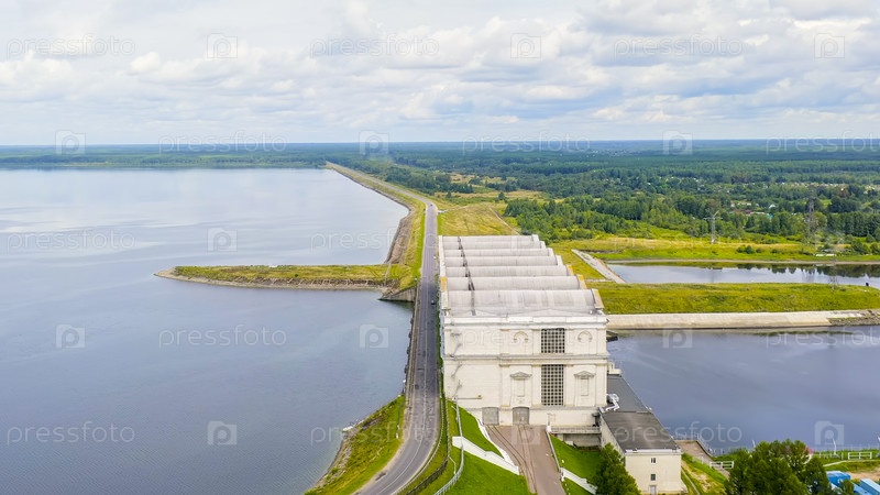Рыбинск, Россия. Аэрофотоснимок Рыбинской ГЭС, Аэрофотоснимок