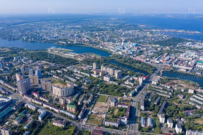Казань, Россия. С высоты птичьего полета. Панорама Казани