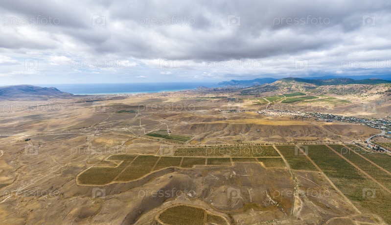 Судак, Крым. Виноградники возле поселка Солнечная Долина. Осень. С высоты птичьего полета