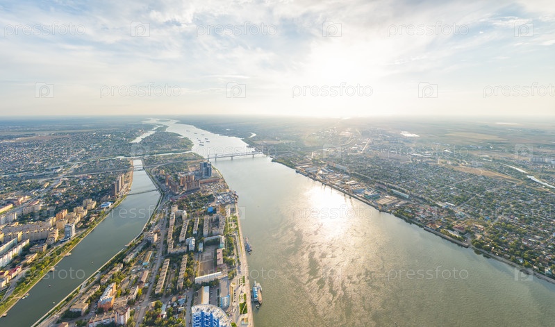 Астрахань, Россия. Панорама города с воздуха летом. река Волга. С высоты птичьего полета