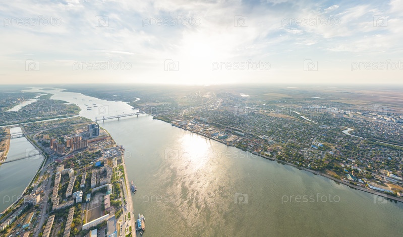 Астрахань, Россия. Панорама города с воздуха летом. река Волга. С высоты птичьего полета