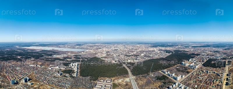 Вид на город Екатеринбург с воздуха, общая панорама. Россия