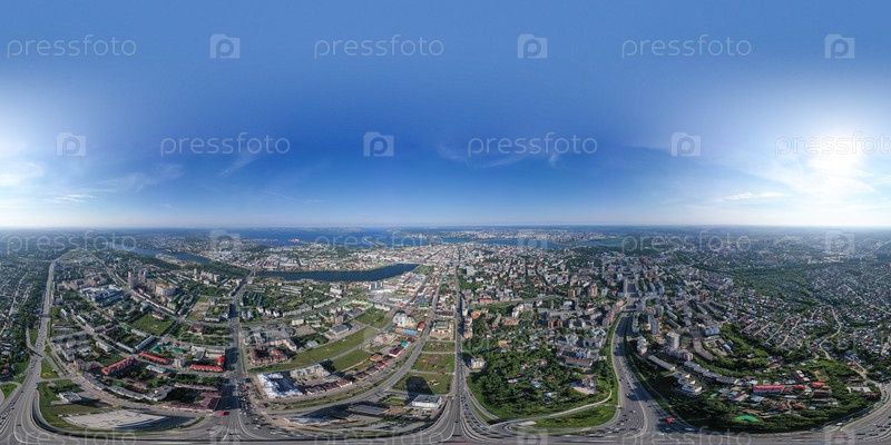 Казань, Россия. С высоты птичьего полета. Сферическая панорама Казани. Полный 360 градусов
