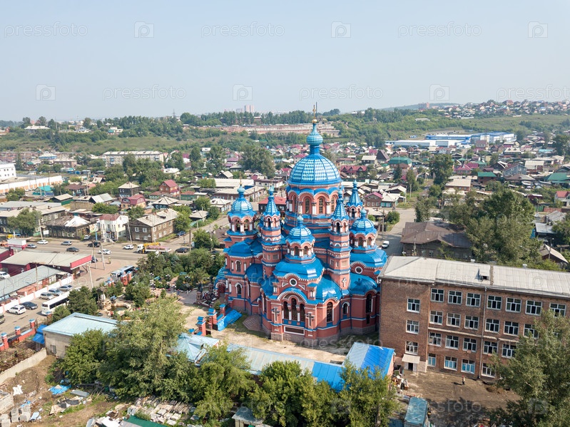 Россия, Иркутск. Храм иконы Казанской Божией Матери в Кустарной слободе. Аэрофотоснимок