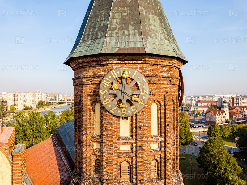 Вид с воздуха Центральная часть города Калининграда, Калининградский собор на острове Канта. Россия