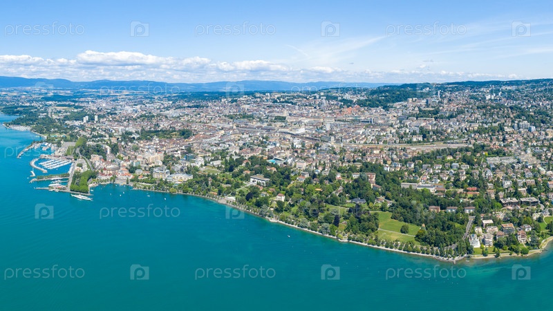 Лозанна, Швейцария. Панорама центральной части города. С высоты птичьего полета