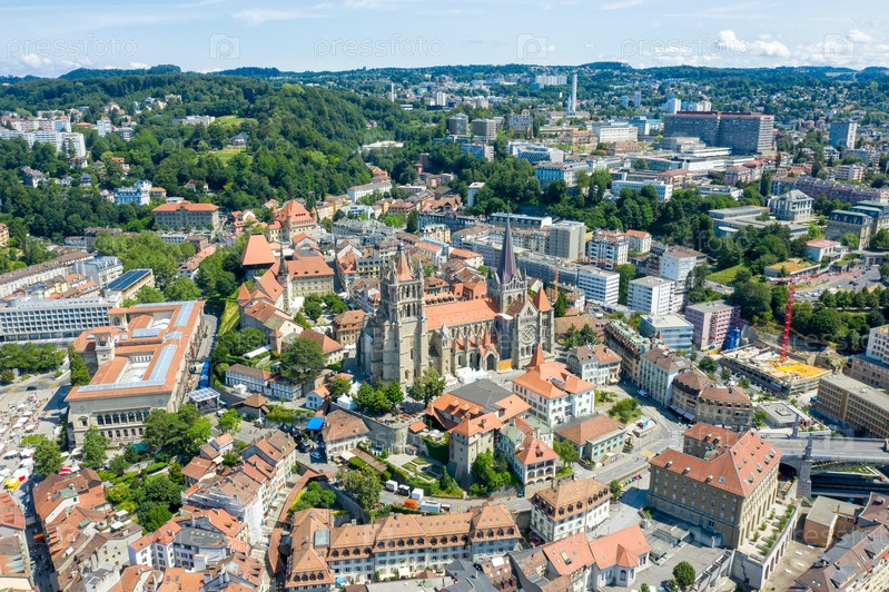 Лозанна, Швейцария. Кафедральный собор Лозанны. Готический собор 12 века. С высоты птичьего полета