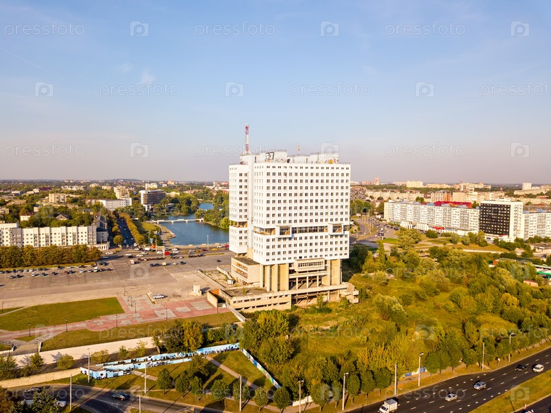 Россия, Калининград. С высоты птичьего полета. Центральная часть города Калининграда, недостроенный «Дом Советов» в городе конструктивизма времен СССР