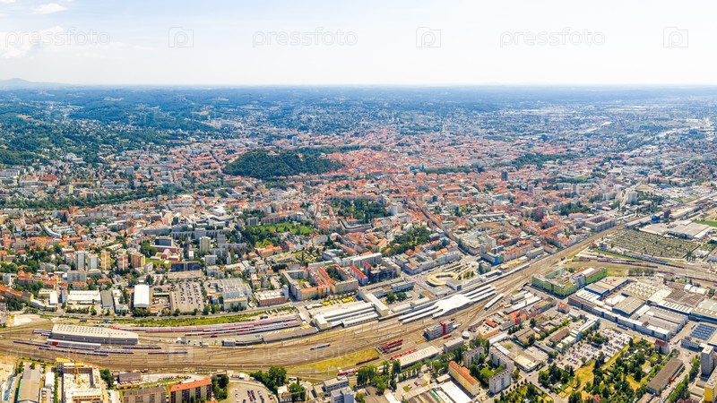 Грац, Австрия. Панорама города. Вид с воздуха на город и его окрестности