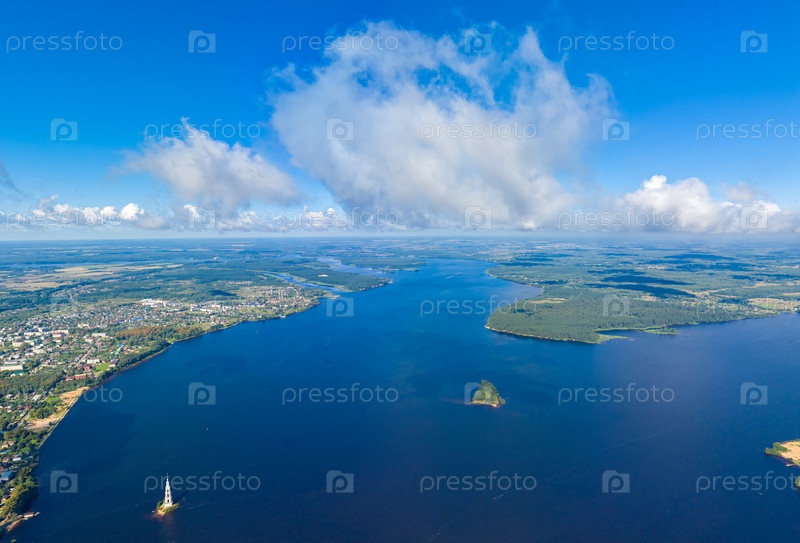 Калязино, Россия. Затопленная Калязинская колокольня. Воды Угличского водохранилища. С высоты птичьего полета