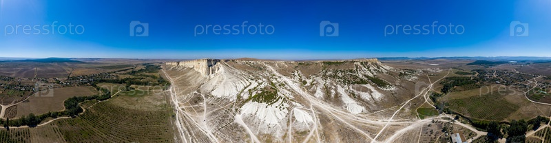 Крым. Белая скала - природная достопримечательность. Скалистый выход. Панорама 360. Вид с воздуха в ясную погоду