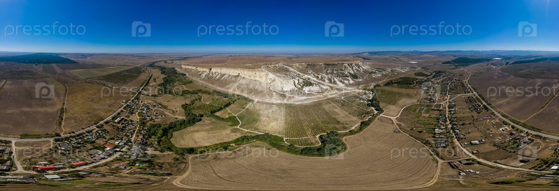 Крым. Белая скала - природная достопримечательность. Скалистый выход. Панорама 360. Вид с воздуха в ясную погоду