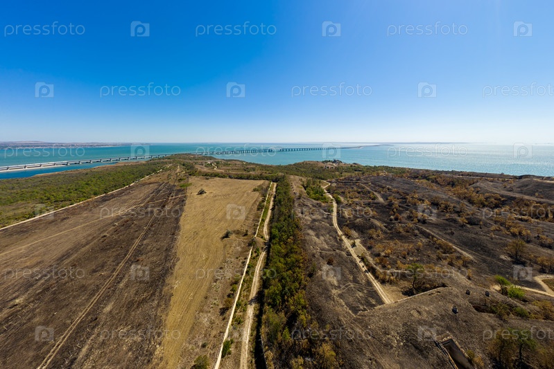 Керчь, Крым. Крепость Керчь - Артиллерийский форт 19 века с тоннелями и подземельями. С видом на Крымский мост. С высоты птичьего полета